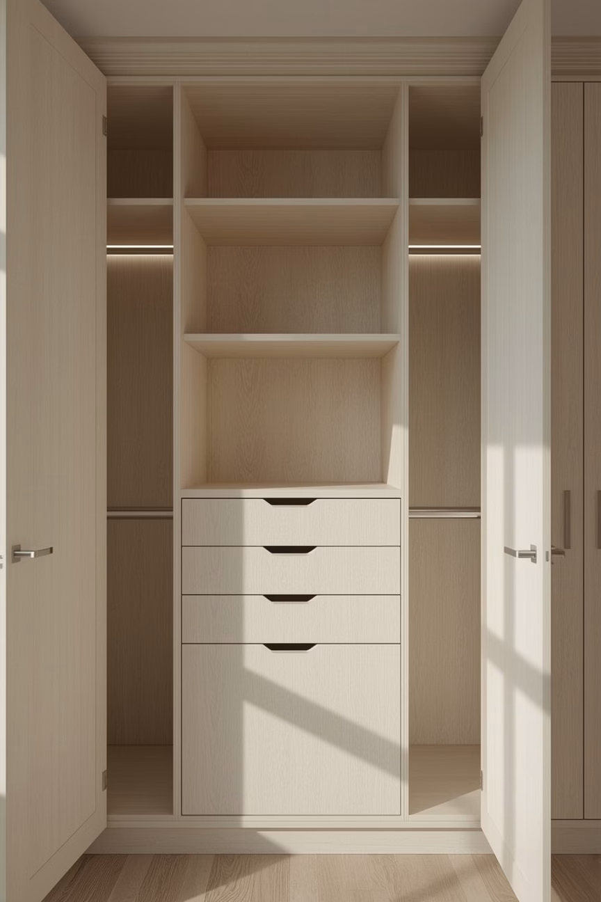 Realizamos puertas interiores de distintos estilos —modernas, clásicas o rústicas—, así como armarios empotrados y modulares con interiores totalmente configurables: baldas, cajoneras, barras, accesorios e iluminación. Trabajamos con una amplia variedad de acabados, colores, lacados y texturas, cuidando cada detalle para conseguir resultados estéticos y prácticos.